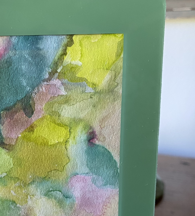 Dessin encré & bic - 22,5x17 cm cadre plastique plat - couleur vert prêt autocollant