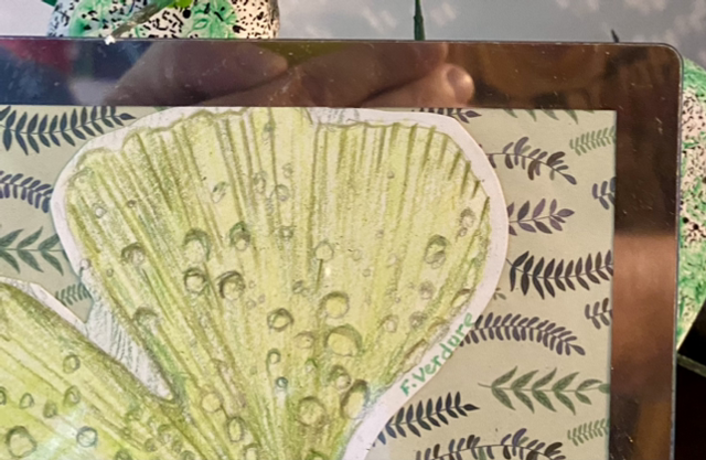 Dessin aux crayons de couleur + papier imprimé 12x17 cm cadre plastique plat - couleur chrome papier prêt autocollant