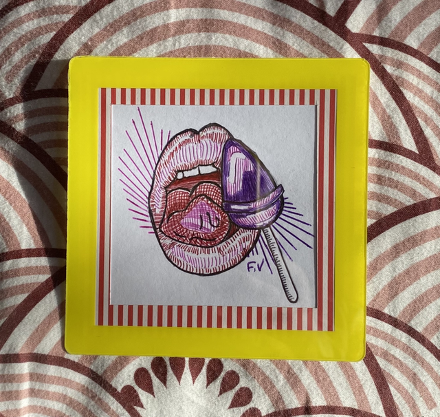 Petit cadre jaune Bouche Bic 🫦 sucette violette
